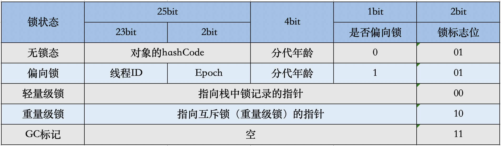 - epoch:偏向锁在CAS锁操作过程中,偏向性标识,表示对象更偏向哪个锁。