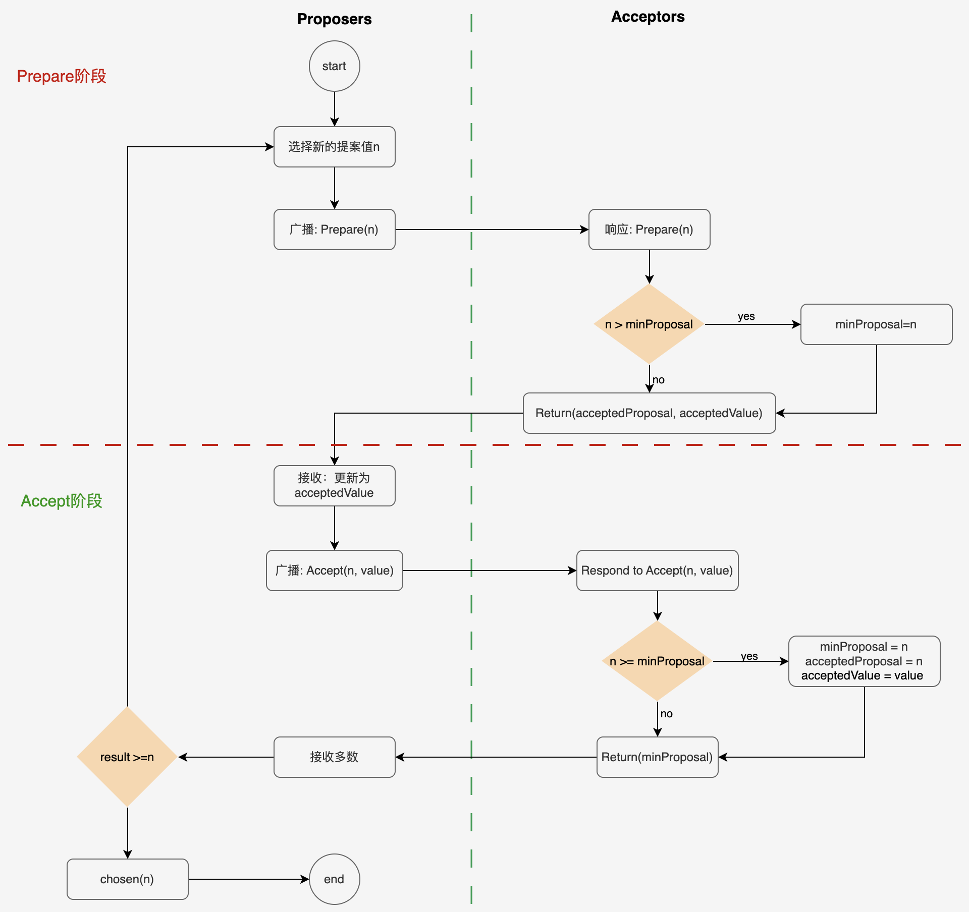 阶段二:接受阶段 (Accept Phase):目标是让多数接受者接受提议者的值。