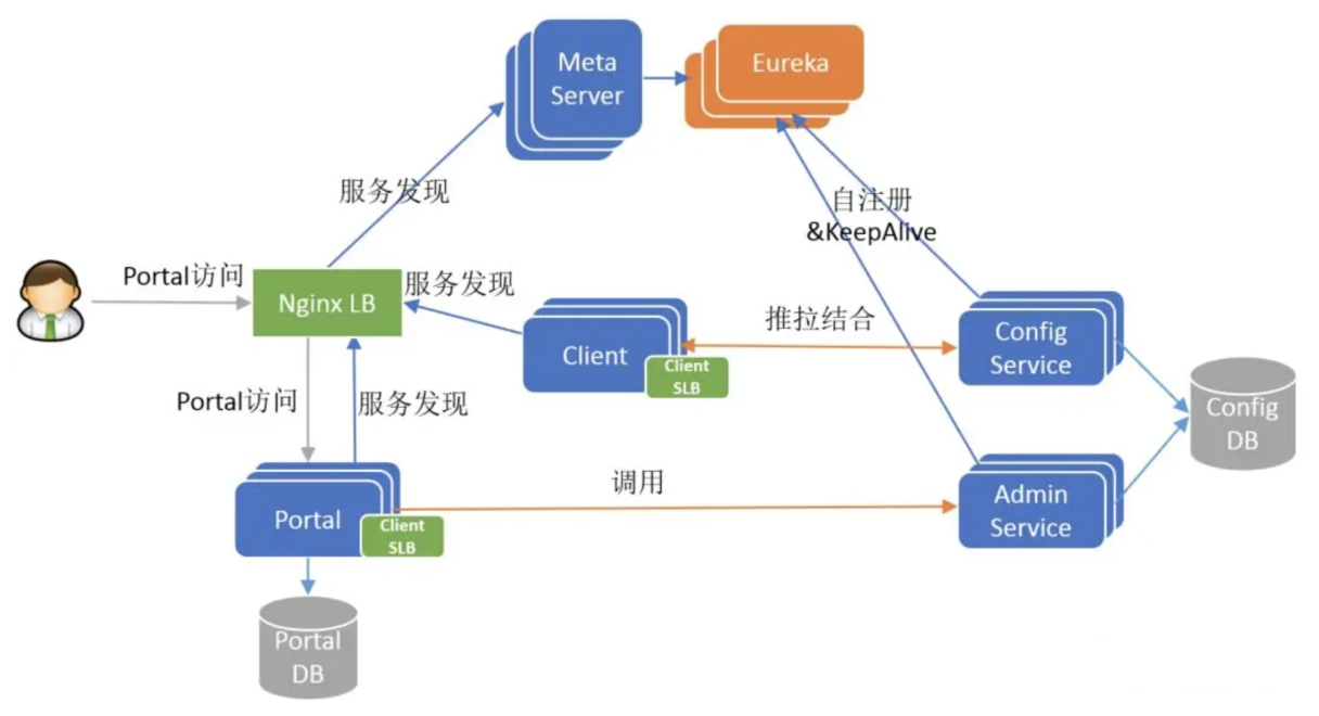 - Meta Server: 负责服务发现,提供Config Service和Admin Service的地址信息。
