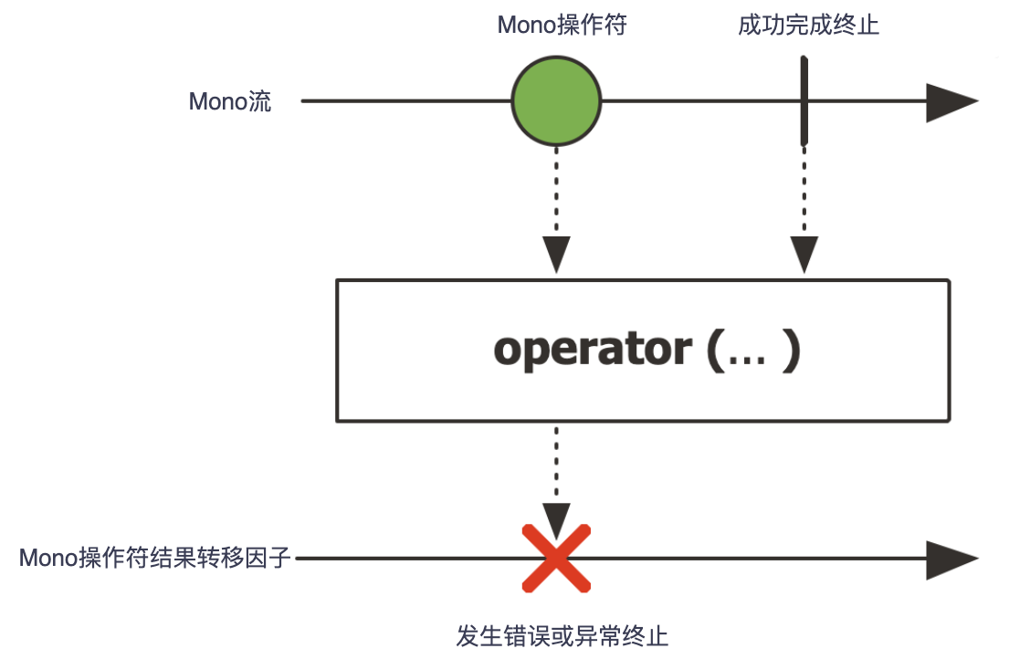 Mono常用操作符:Mono类包含了与Flux类中相同的静态方法just(),empty()和never()等。Mono还有一些独有的静态方法: