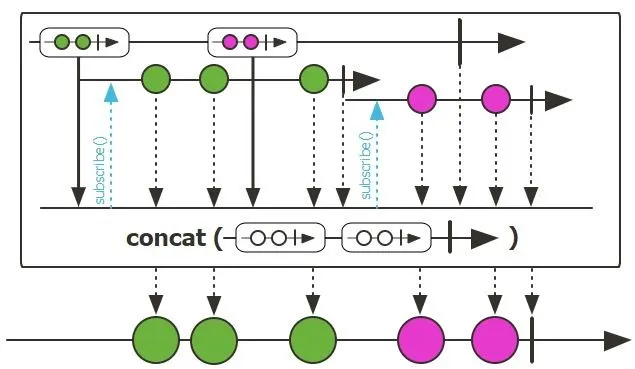 concat()/concatMap():将提供的所有源连接成一个可迭代对象,并将源发出的元素向下游转发。concat是通过依次订阅第一个源,然后等待其完成再订阅下一个源来实现的,依此类推,直到最后一个源完成。任何错误都会立即中断序列并向下游转发,它会返回一个新的 Flux,该 Flux 连接了所有源序列。