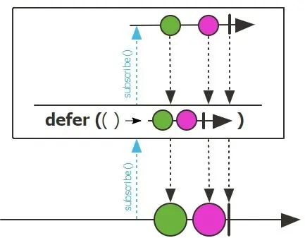 defer():延迟捕获或创建序列对象。它会在每次对生成的 Flux/Mono 进行订阅时懒惰地提供一个发布者,因此实际的源实例化被推迟到每次订阅时,并且提供者可以创建一个订阅者特定的实例。
