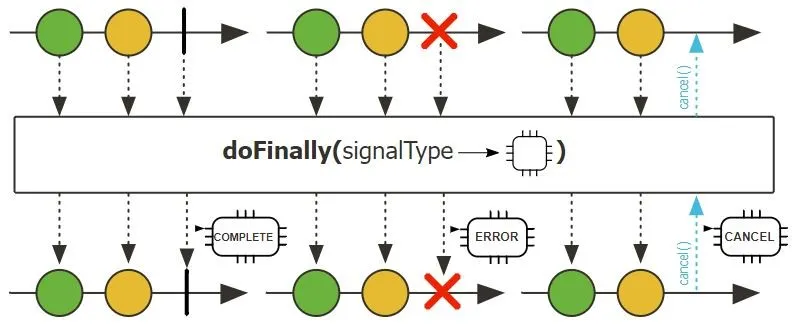 doFinally():最终执行,类似try-finally。 doFinally 在终止时无论是 onComplete、onError还是取消都会被执行, 并且能够判断是什么类型的终止事件。