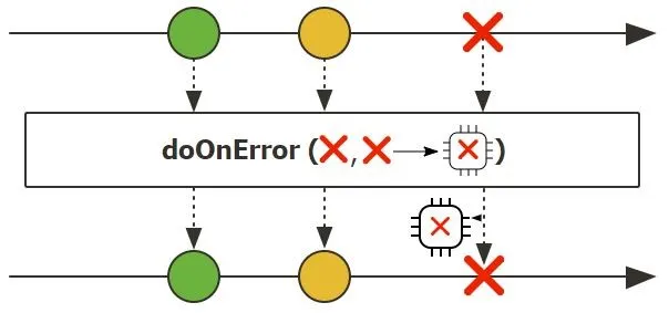doOnError(Consumer<Throwable> consumer):注册一个回调函数,用于观察(记录日志、监控指标等)错误信号,但不会改变或消耗错误信号,错误会继续向下游传播。仅用于执行副作用操作,如日志记录或指标收集。