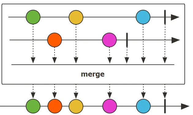 merge(Publisher<T>... principals): 以交错的方式合并多个 Publisher 的输出。