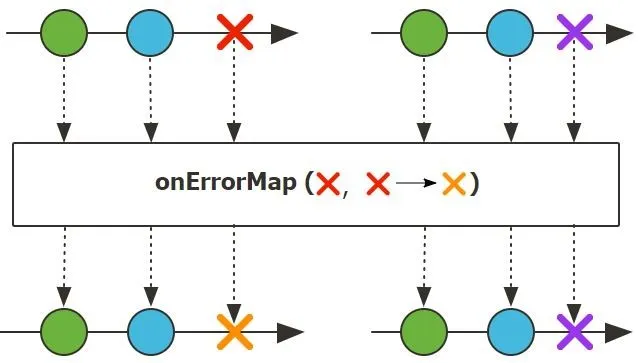 onErrorMap(Function<Throwable, Throwable> mapper):将捕获到的异常转换为另一种自定义的异常类型,并重新抛出(向下游传递新的 onError 信号)。适用于将底层技术异常(如 IOException)封装为业务异常(如 UserServiceException),以便下游更好地理解和处理。