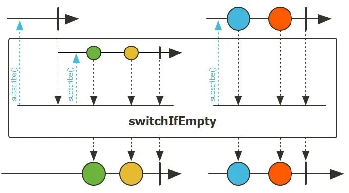 switchIfEmpty():如果序列完成时没有任何数据,它会切换到备用发布者。